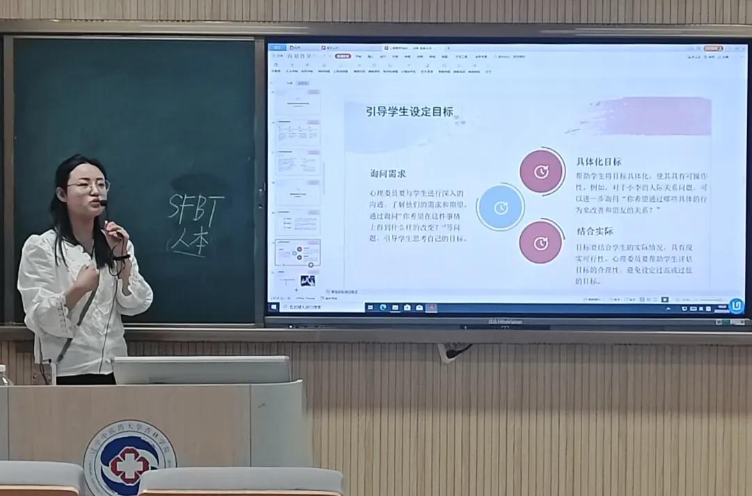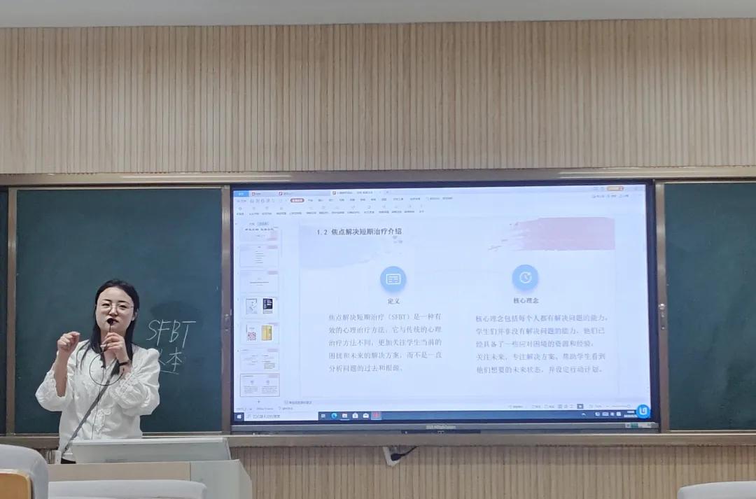 张老师强调心理委员需要帮助同学们动起来,设立小目标后确定步骤并开始行动计划,帮助同学们明确自身心理问题,聚焦于资源后去设立目标积极解决问题,采取有效的措施,增强信心与动力,减少焦虑内耗的心情。