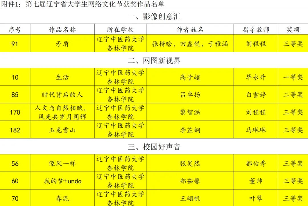 近日,辽宁省网络思想政治工作中心公布了辽宁省大学生网络文化节和全省高校网络教育优秀作品推选展示活动评选结果,我校师生作品获奖众多,成绩优异,共有八件作品获奖,其中一等奖一名、二等奖一名、三等奖六名。
