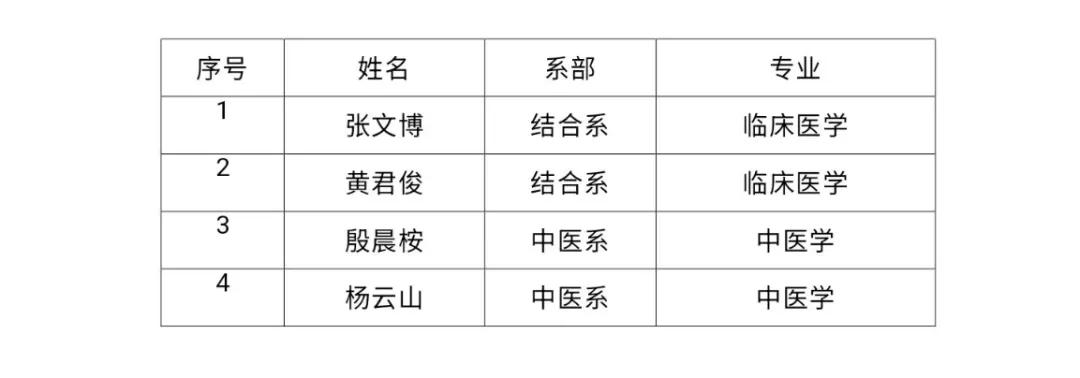 根据《辽宁中医药大学杏林学院征兵工作实施办法》(辽中医杏林院发〔2024〕39号)文件要求,经学生本人申报、系部推荐、武装部审核等环节,在综合考虑学生服役期间表现及获奖情况的基础上,现将拟评为辽宁中医药大学杏林学院“2025年优秀退役大学生”荣誉称号的学生名单公示如下: