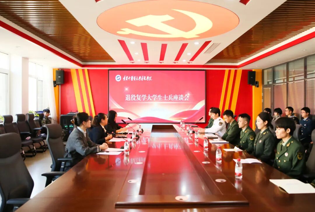 11月18日,我校退役复学大学生士兵座谈会在温馨庄重的氛围中顺利举行。学校党总支副书记李冰、学生处处长兼武装部部长李珺、征兵办公室主任崔德德、各系辅导员代表及退役复学大学生士兵共同参会。本次座谈会以“精准帮扶、凝心聚力、助力成长”为宗旨,聚焦学生关切,搭建沟通平台,针对学业衔接、生活适应、就业规划等关键需求,提供坚实支撑,实现精准赋能。桑美虹等5名学生代表分享了军旅至校园的心路蜕变,并由衷感谢军营和母校的培养,致敬温暖关怀。他们郑重表态,将加速适应角色转变,勤学笃行、奋勇争先,以实际行动诠释退役士兵的责任担当,践行医学青年的时代使命。